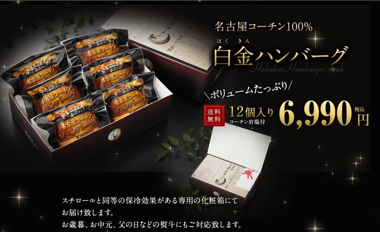 | 商品名 | 名古屋コーチン ハンバーグ 12個入り ギフト 岩塩付き |