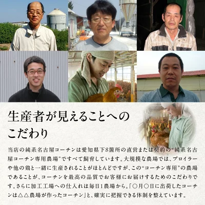 その中でも当店で扱うのは、厳しい生産基準を満たした「純系名古屋コーチン」のみ。